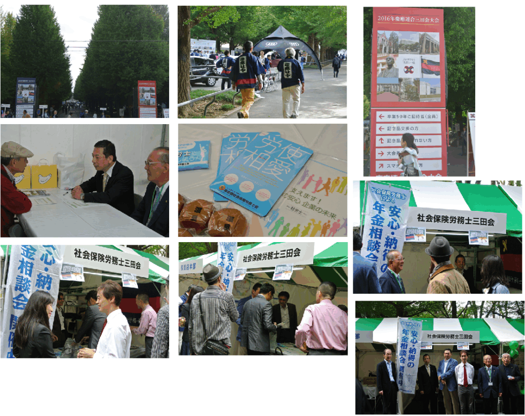 H28.10.16、本日は秋晴れのもと連合三田会大会に労務&年金無料相談会のブースを出しました。