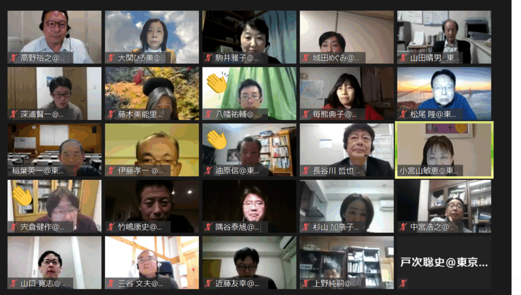 今年は、恒例のリアル忘年会が難しいため、代わりにオンラインでの『年忘れ情報交歓会』が行われ、25名の会員の皆様にご参加いただきました。
