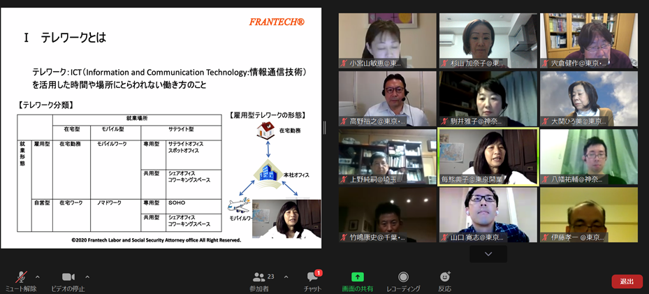 数年前に「これからはじめる在宅勤務制度」を出版され、講演でもご活躍の毎熊さん、勤務社労士としてマスメディアの第一線でご活躍されている戸次さんにそれぞれのお立場でテレワークをテーマにお話いただきました。