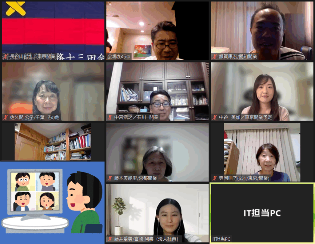 懇親会では、会場・オンラインとも、年次や種別、また社労士歴の長短等にかかわらず、慶應出身の社労士どうしの交流の場を温めながら、終始明るく和やかな時間を過ごすことができました。