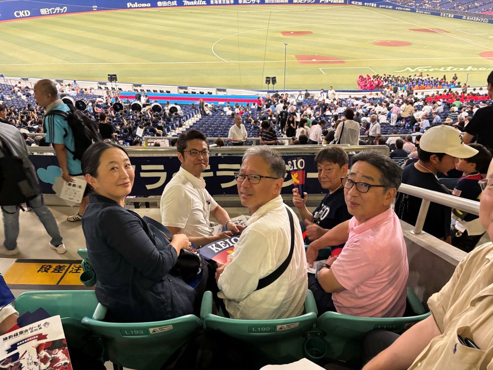 野球の大会観戦を行いました。参加者は、稲門会13名・三田会10名でした。